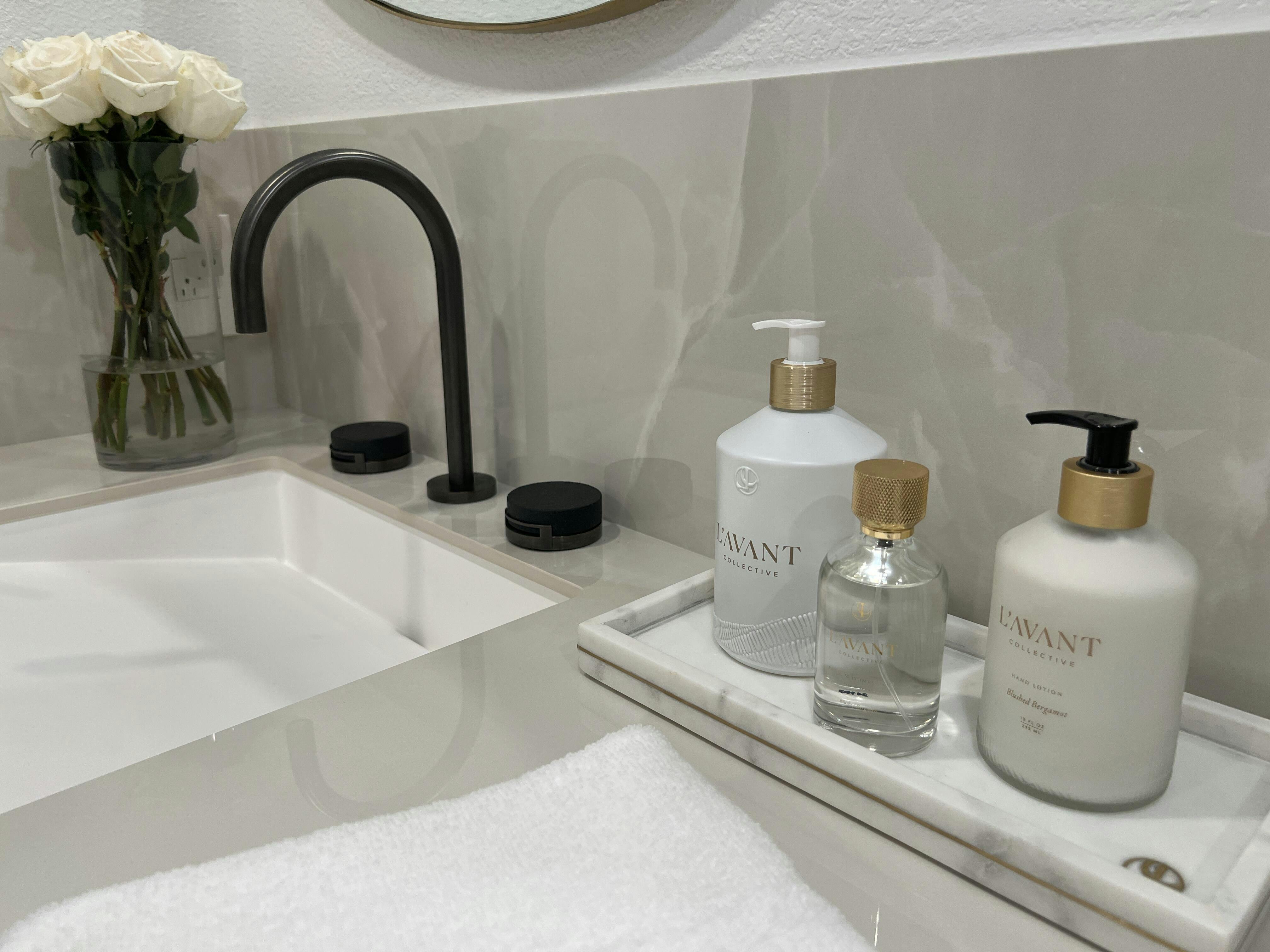 Luxurious and ultra-hydrating, L’AVANT Hand Lotion is equal parts pampering and protection. Lightweight, non-greasy, and delicately scented, our lush moisturizing formula is like a spa treatment for your hands. It's packed with nourishing, revitalizing, plant-based ingredients, within a beautifully crafted glass bottle dispenser.