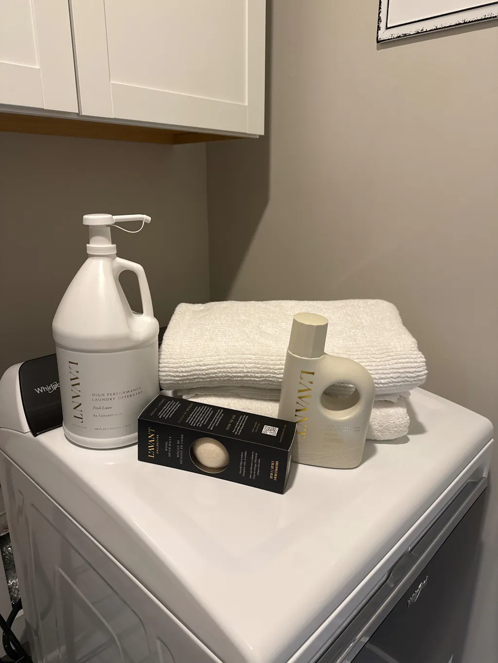 To use: Follow garment care label instructions. Pour 25ml for standard loads in high efficiency washers or top load washing machines. Pour 50ml for heavily soiled loads. For extra luxury, toss our wool dryer balls splashed with a few drops of L'AVANT Fresh Linen or Blushed Bergamot Laundry Oil into each dryer load.