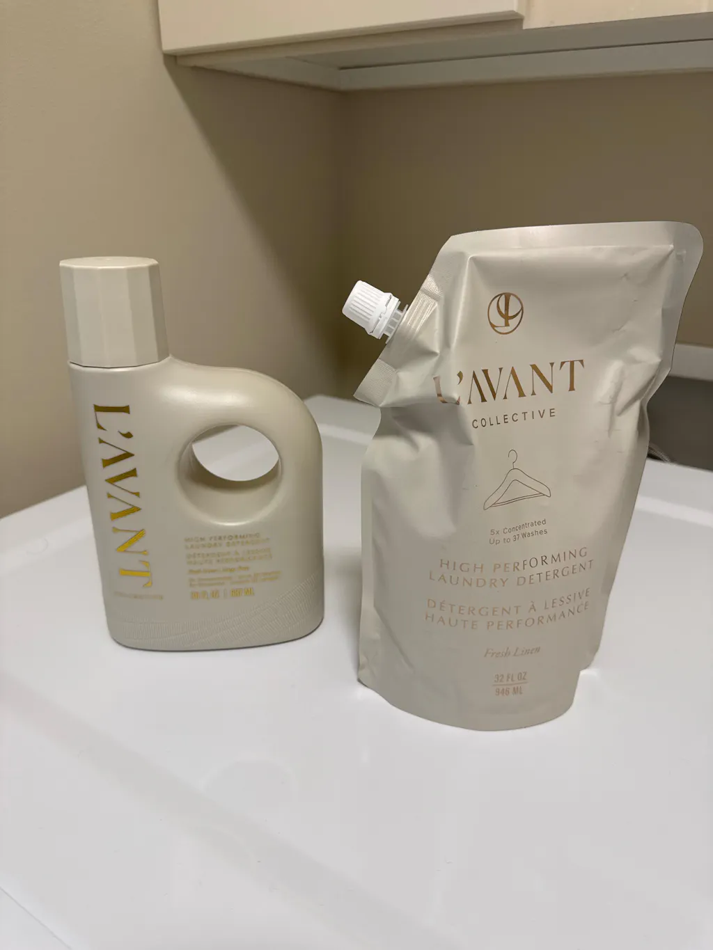 32 oz refill pouch made wtih 75% less plastic than the L'AVANT Laundry bottle